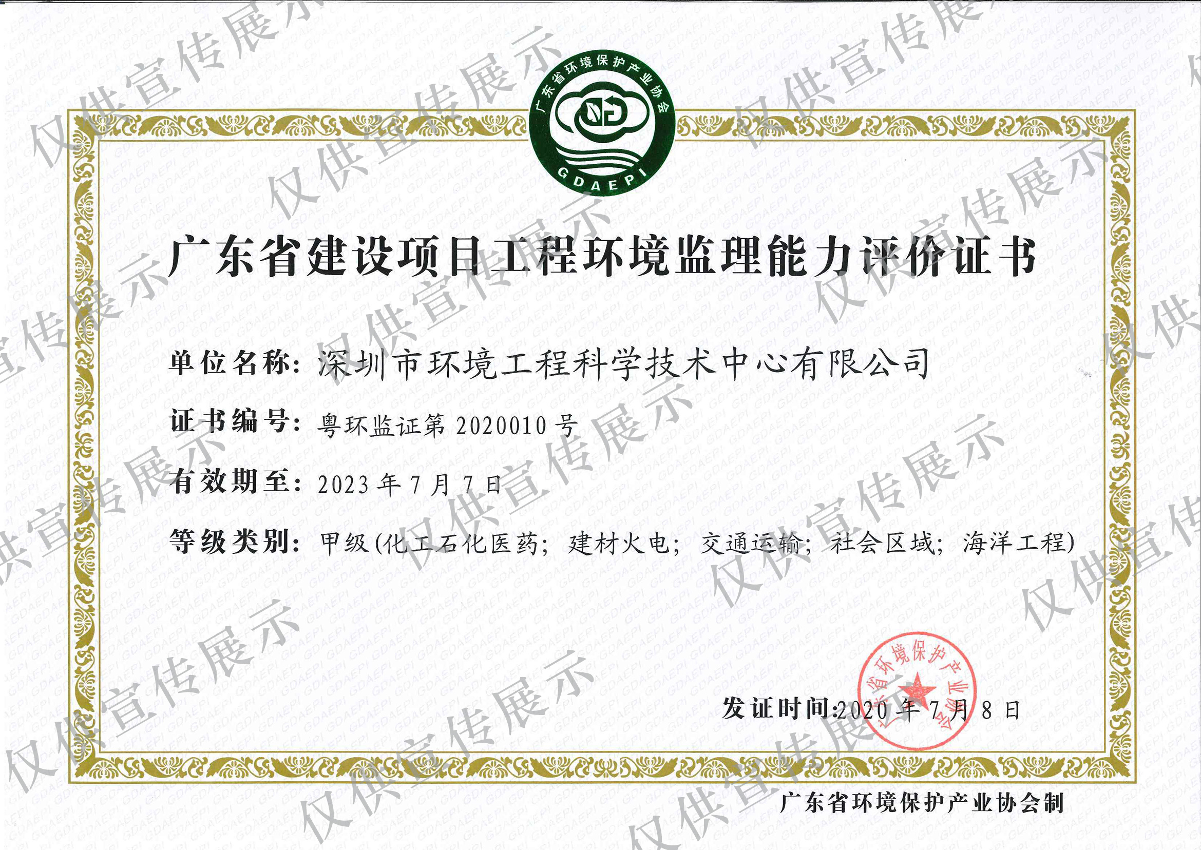 廣東省建設(shè)項(xiàng)目工程環(huán)境監(jiān)理能力評(píng)價(jià)證書(shū)